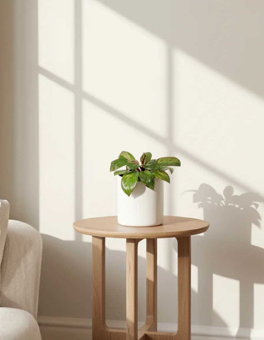 Your Philodendron ‘Dwarf Red Congo’ comes planted in a modern self-watering pot, which ensures consistent hydration and reduces the risk of over- or under-watering. This easy-care system keeps its foliage glossy and vibrant, allowing you to enjoy its unique color transitions with minimal effort.